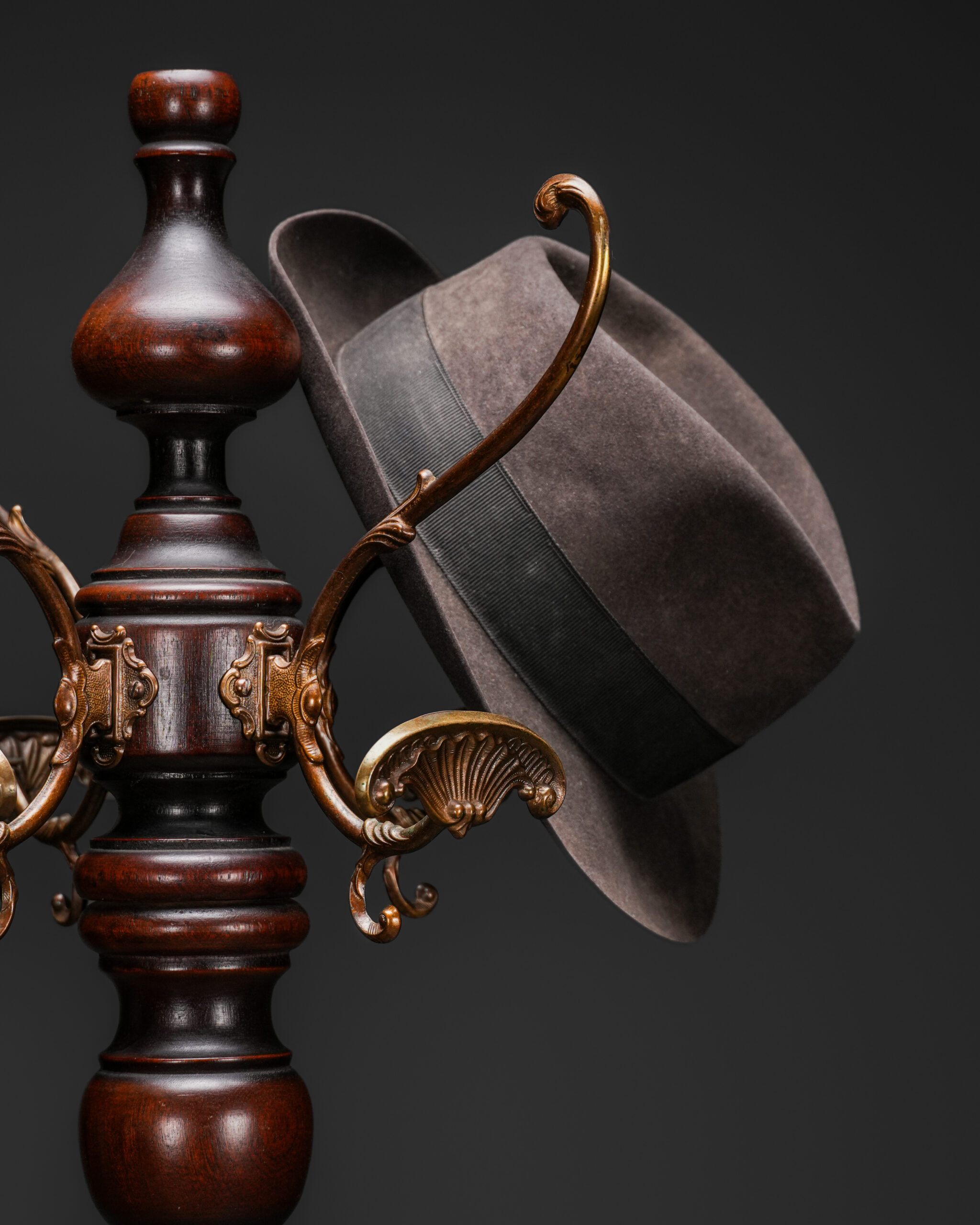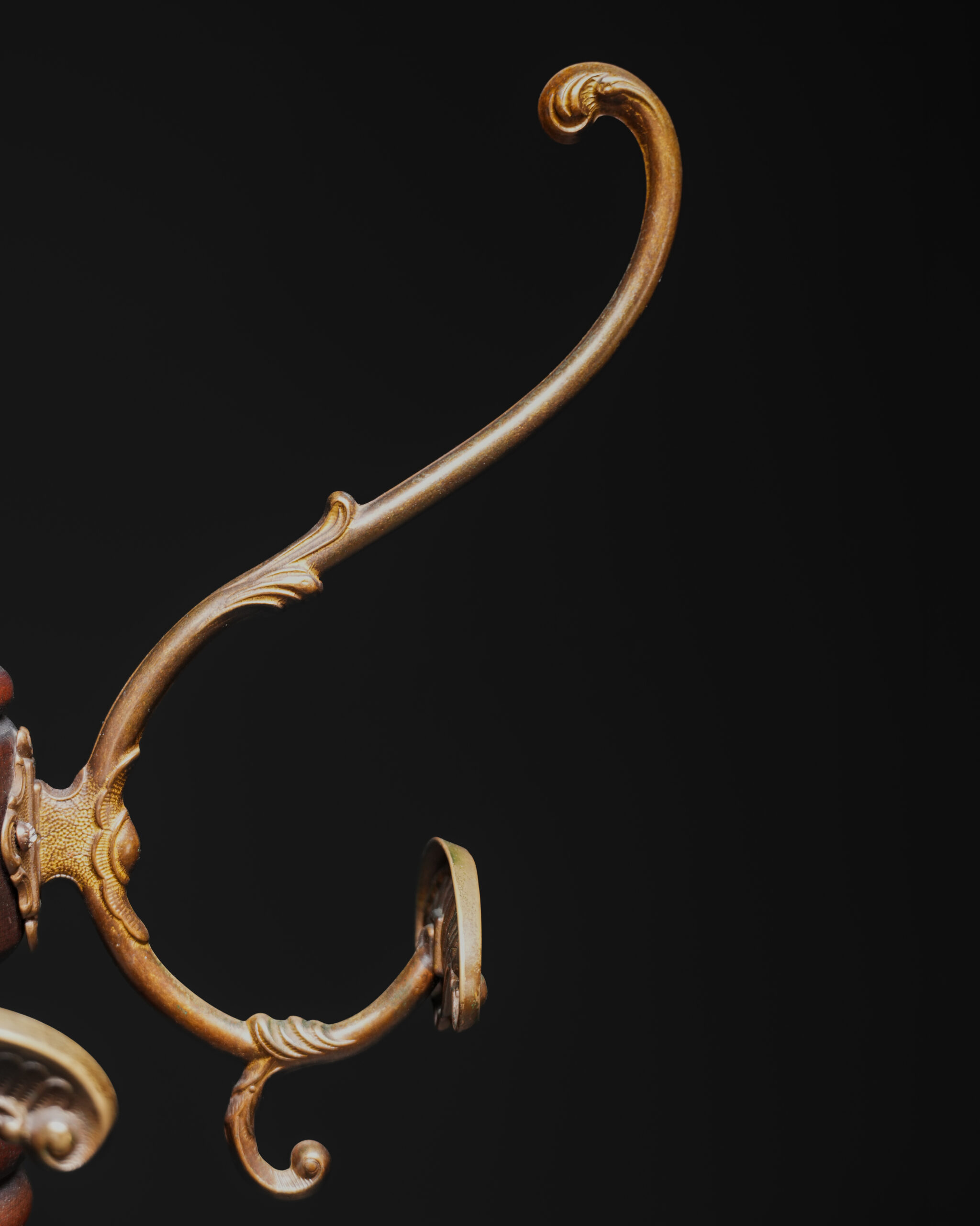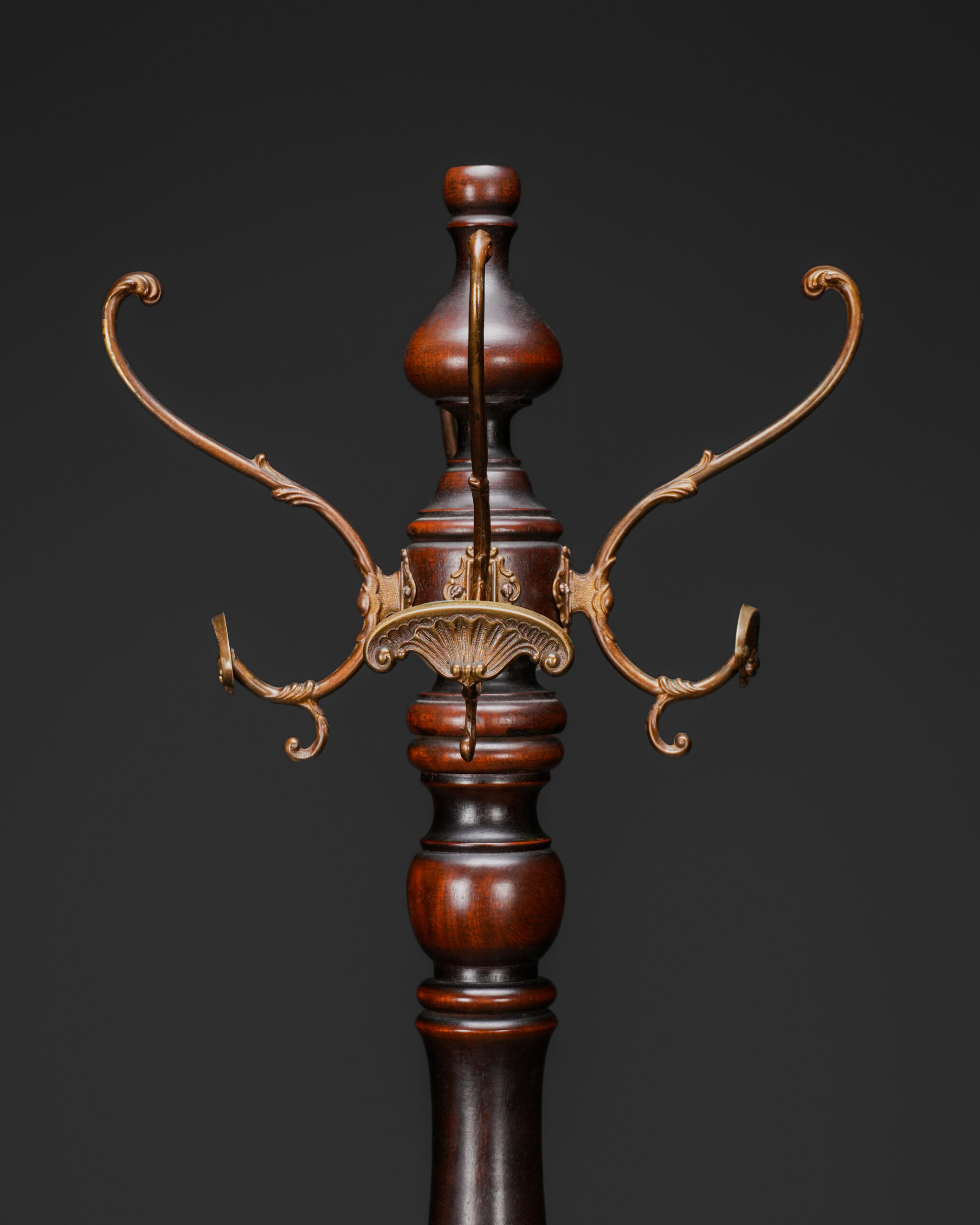 19. yüzyıla tarihlenen bu etkileyici Neo-Rönesans stil ahşap askılık, dönemin mimari ve heykelsi süsleme anlayışını yansıtan zengin oyma detaylarıyla dikkat çeker. Torna işçiliğiyle şekillendirilmiş uzun ve zarif gövdesi, üst bölümde yer alan kıvrımlı metal askılarla tamamlanarak hem işlevsel hem de dekoratif bir form sunar.