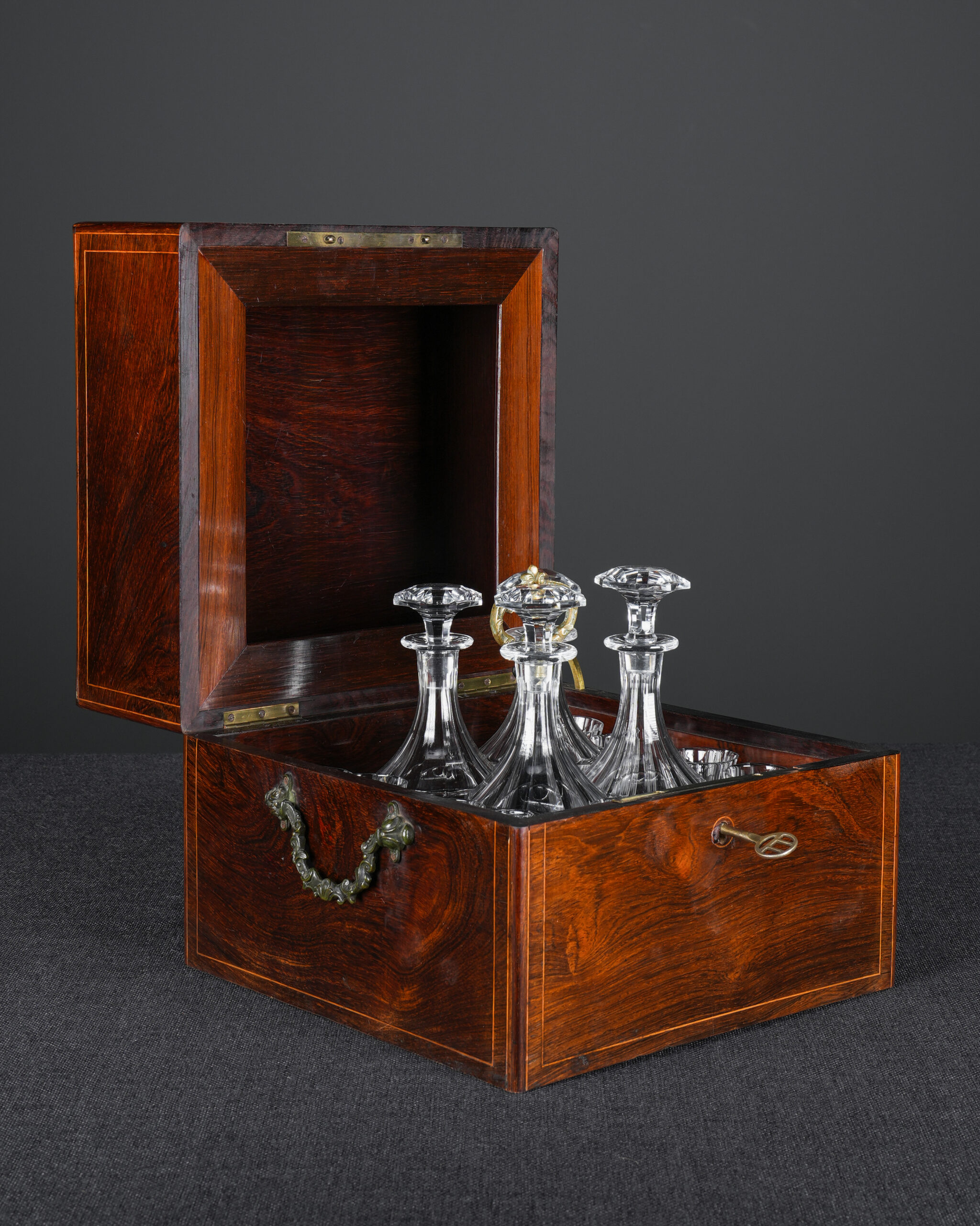 Başlangıçta içerisindeki pahalı içkilere izinsiz erişimi önlemek için tasarlanmış olan bu kompakt ve güvenlikli bar seti ismini; aç gözlülüğü nedeniyle cezalandırılan Yunan mitolojisindeki Tantalus karakterinden almıştır.