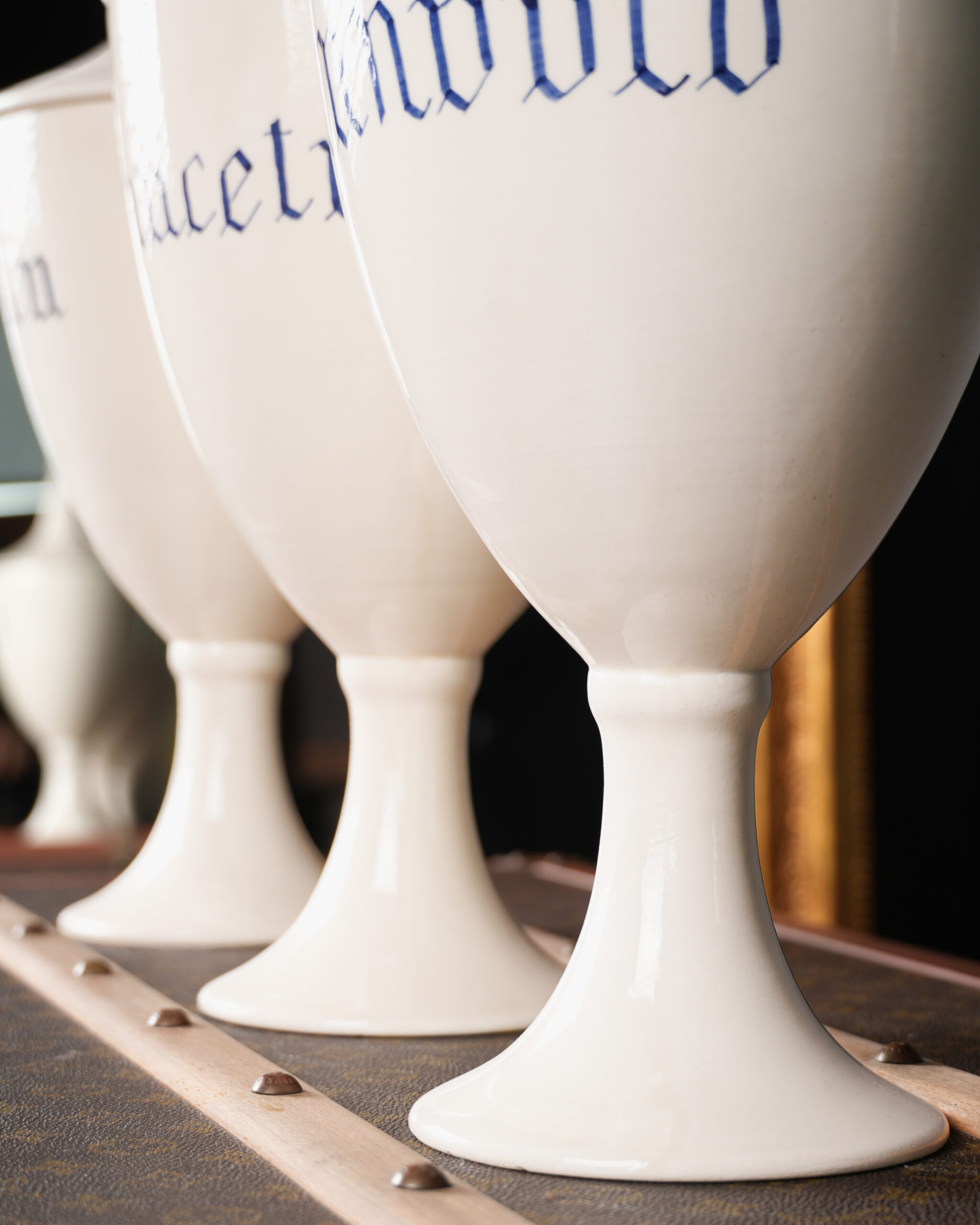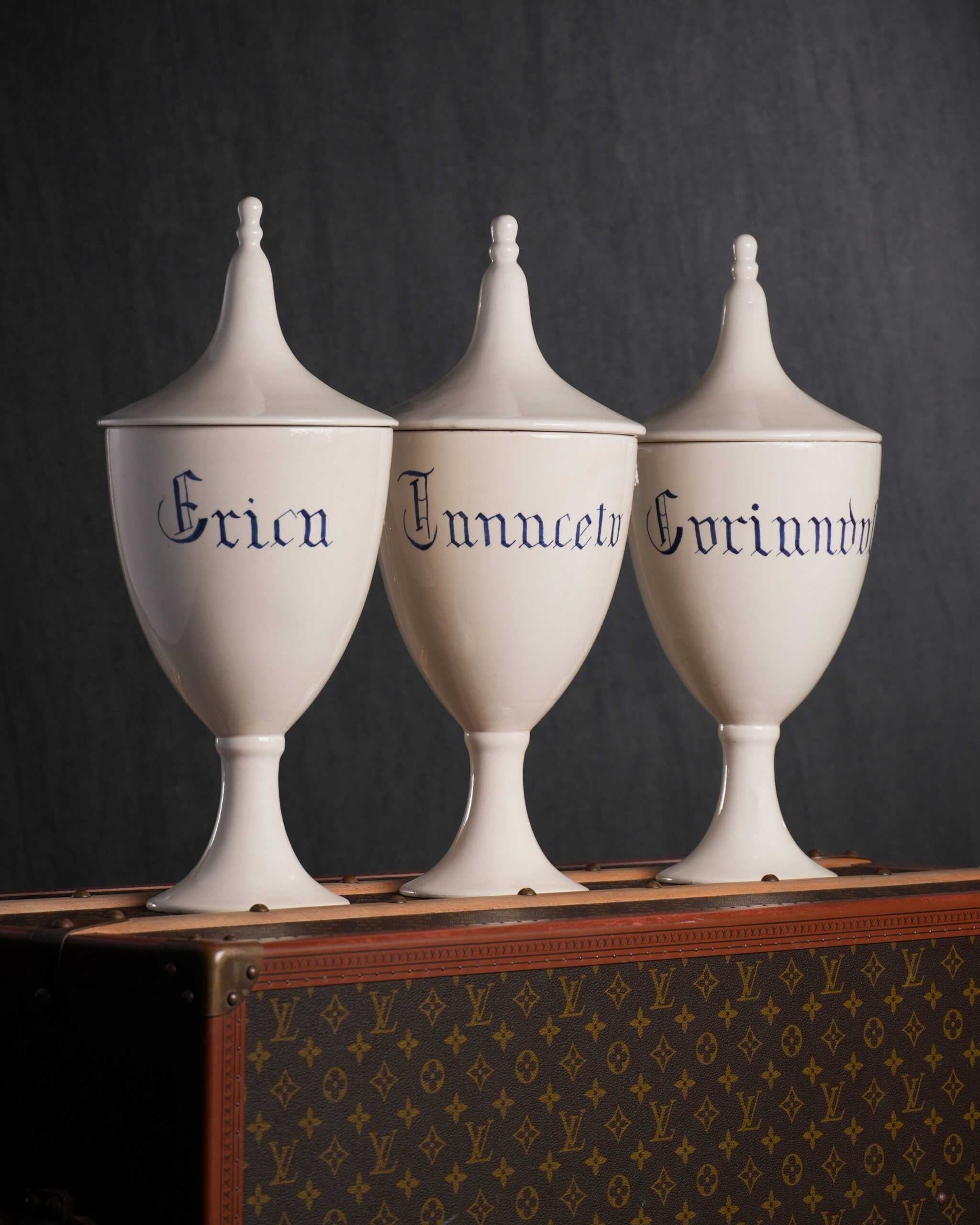 Apothecary Jars; 18. yüzyıldan itibaren ilaç, merhem veya bitkisel karışımları saklamak için kullanılmış geleneksel seramik eczacı kavanozlarıdır. Pişmiş topraktan yapılmış ve içlerindekini korumak için su geçirmeyen bir sır ile kaplanmışlardır.