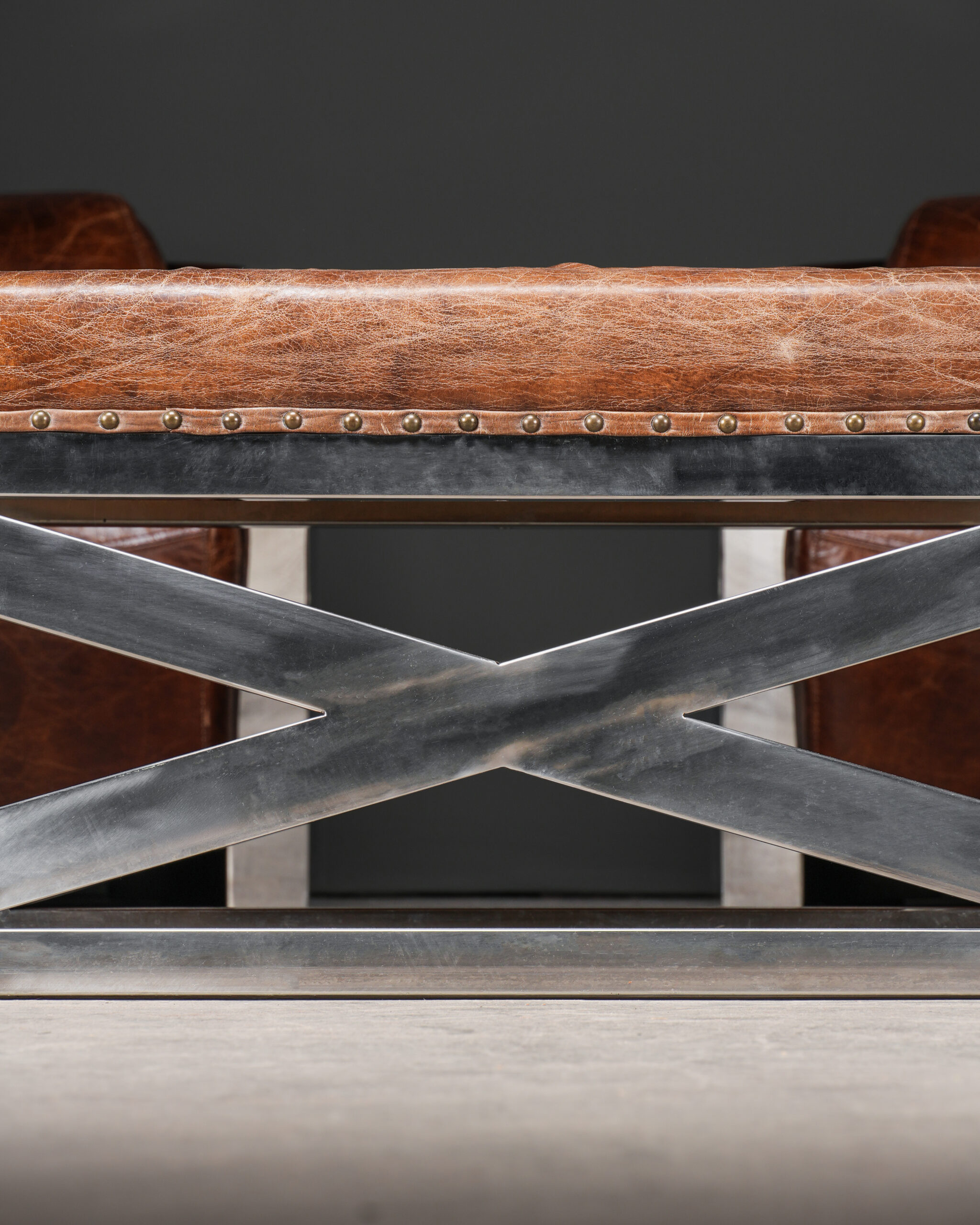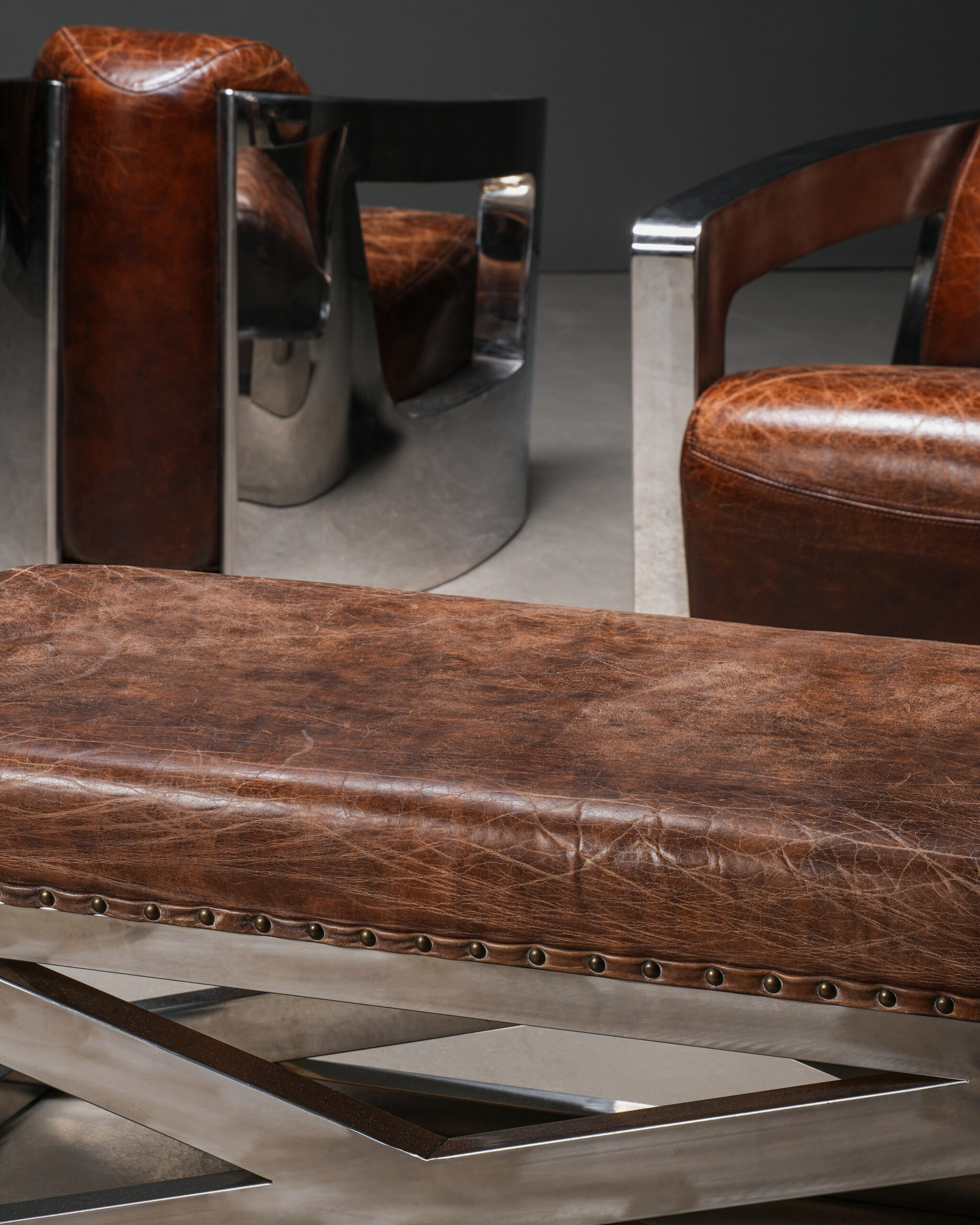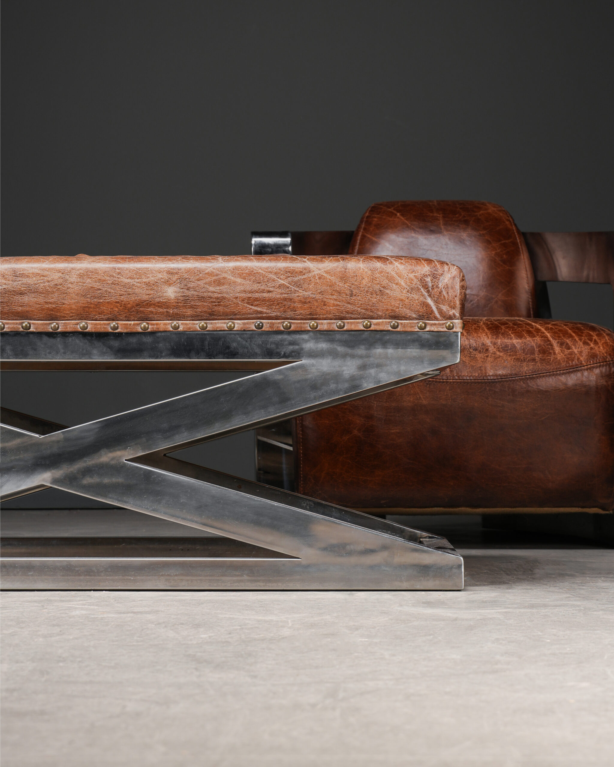 Aviator Deri Koltuklar ve X Ayaklı Aviator Puf – Üçlü Set.