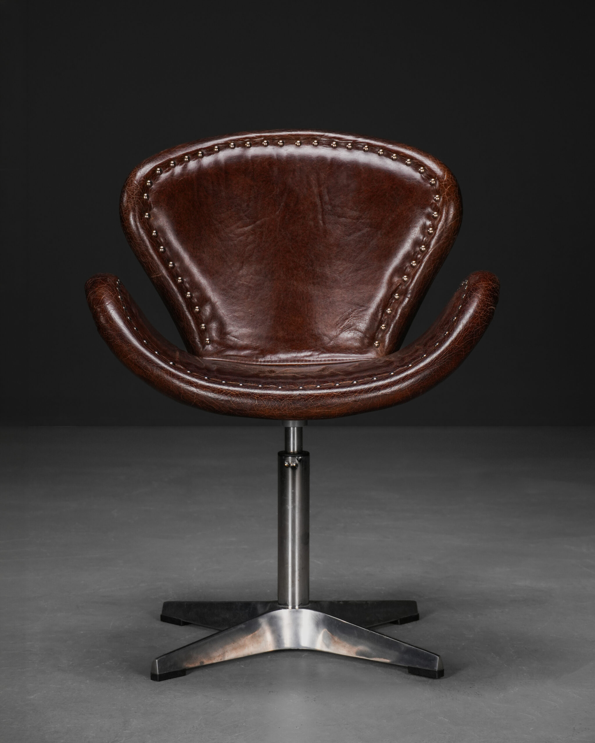 Kavisli kol formu, ergonomik oturum yapısı ve merkezi metal ayak sistemi, tasarıma hem konfor hem de dengeli bir duruş kazandırır. Endüstriyel, modern ve maskülen dekorasyonlarda dikkat çekici bir tamamlayıcı parçadır.