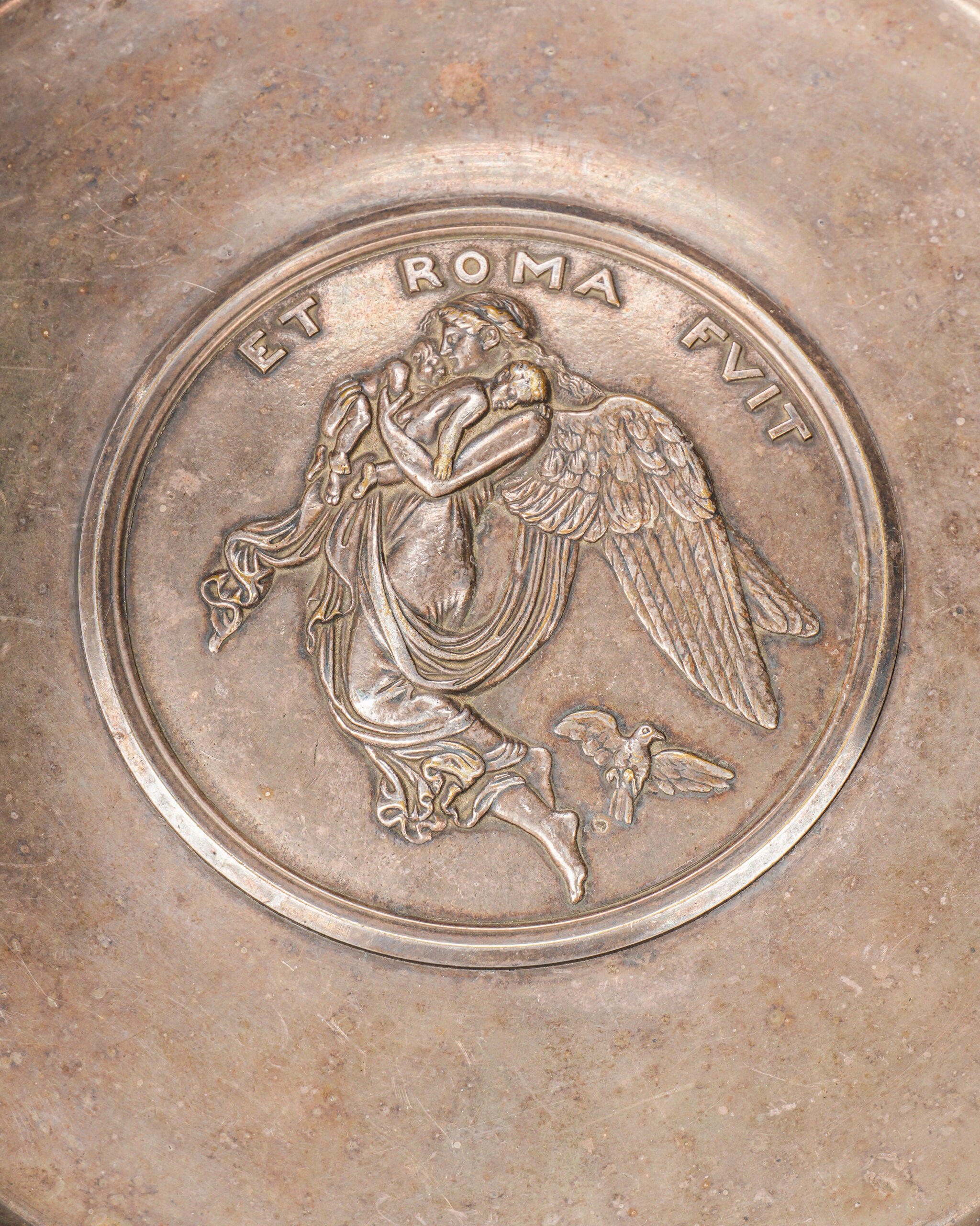 “Et Roma Fvit” kabartmalı ve “Romulus & Remus” figürlü, neoklasik pirinç sunum tabağı.