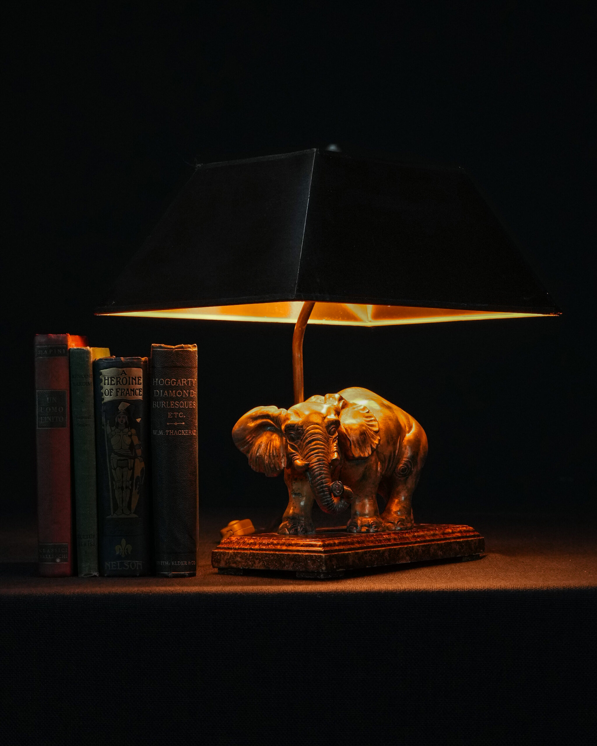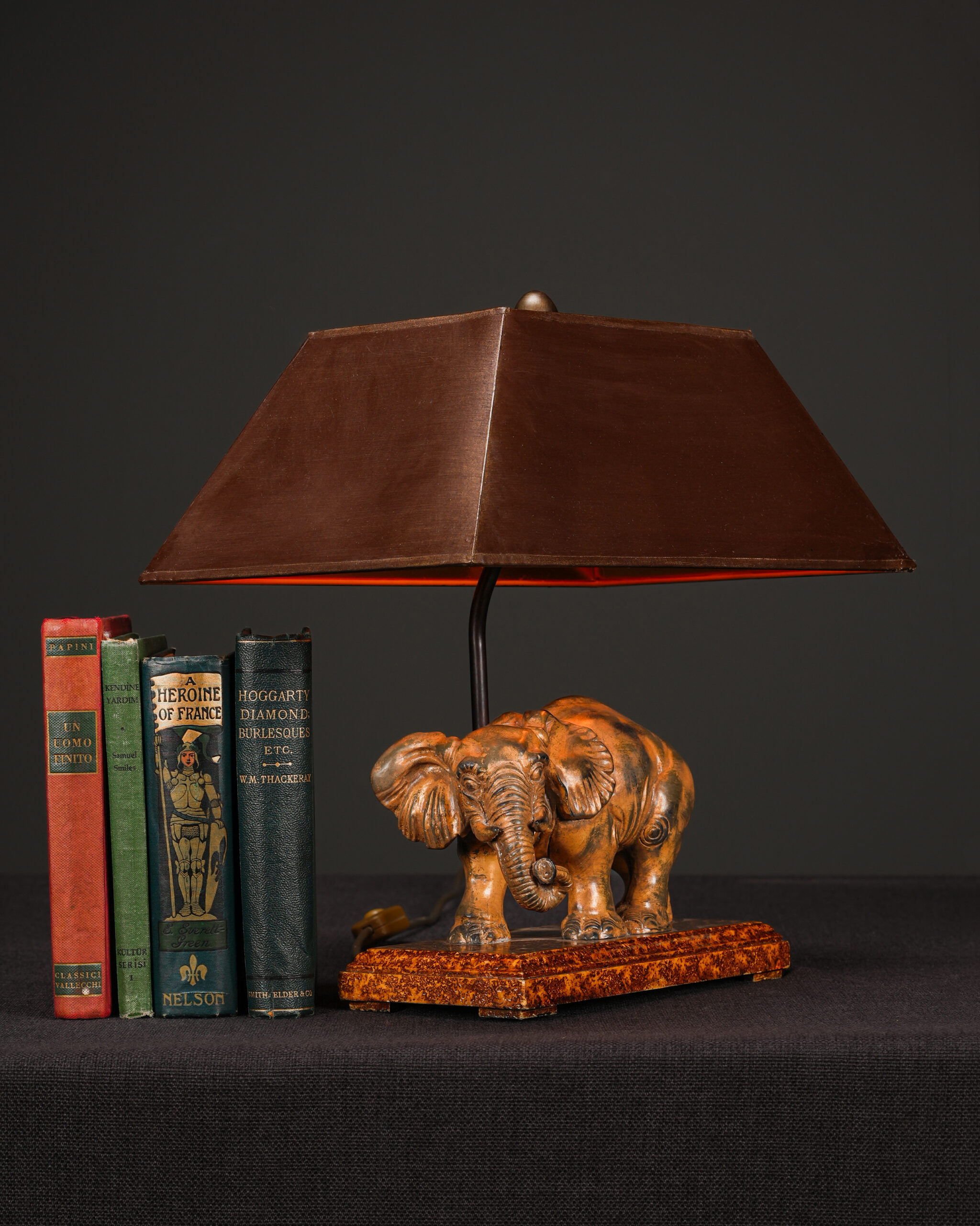 Tutya fil figürlü masa lambası.