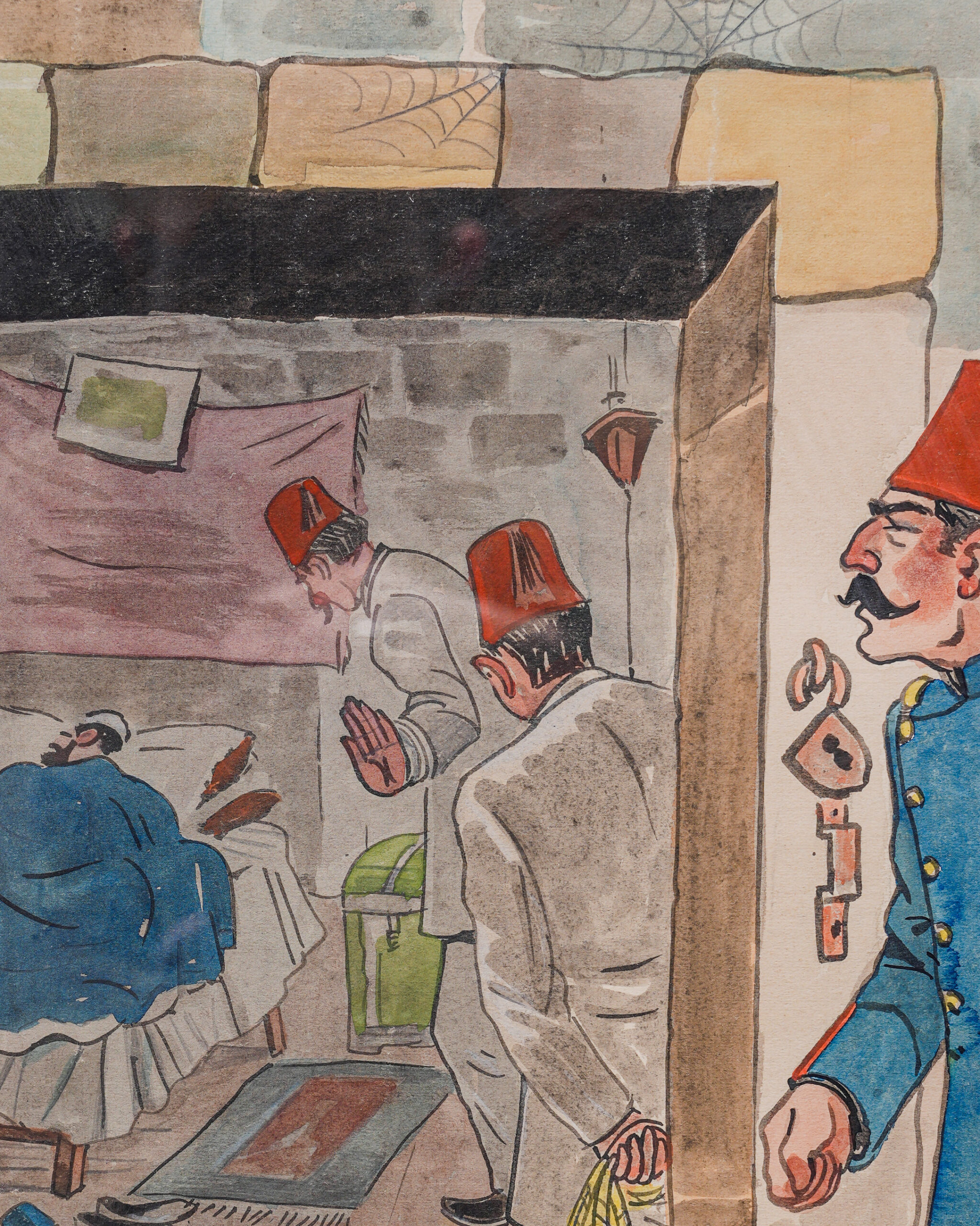 Kağıt üzerine sulu boya karikatür. İmzalı “Salih” (sağ alt). 75 cm x 65 cm
