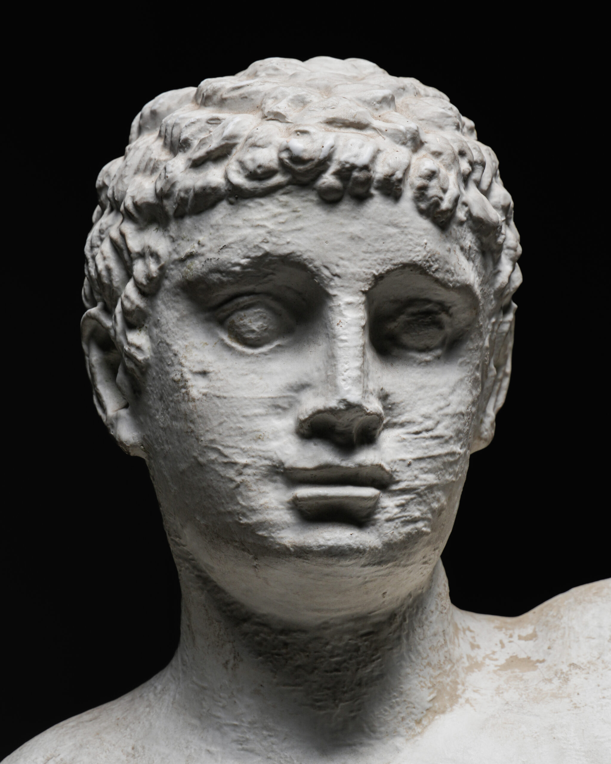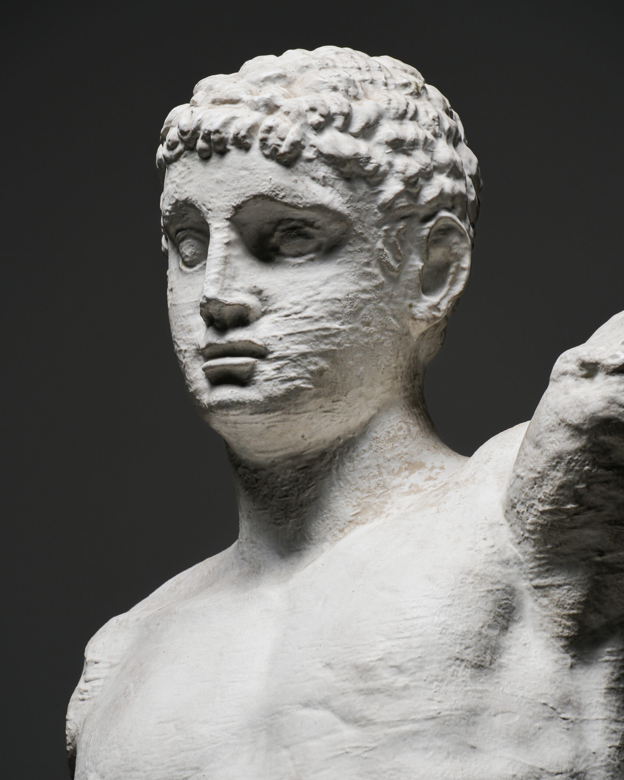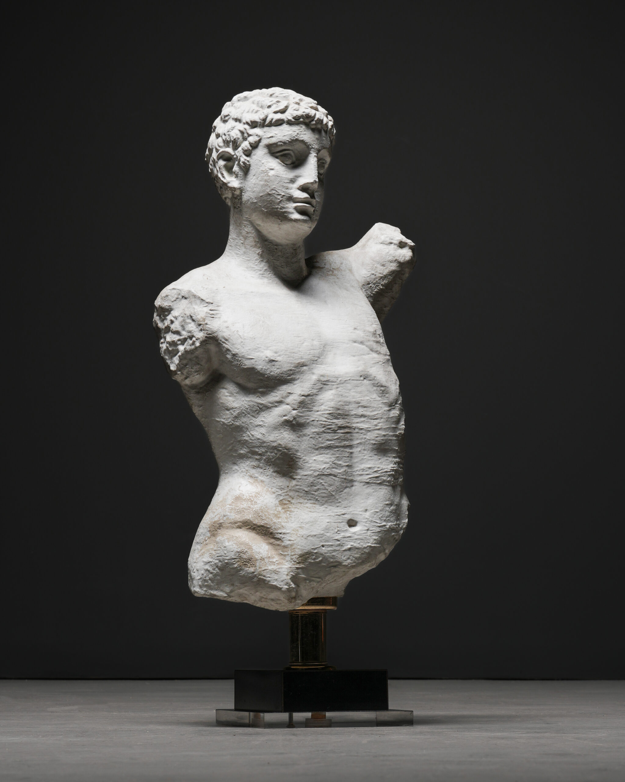 Klasik antik heykel estetiğini modern bir yorumla birleştiren bu etkileyici torso, Roma dönemine atıfta bulunan idealize yüz hatları ve kıvırcık saç detaylarıyla öne çıkar. Yüz kısmındaki nispeten net işçilik ile gövdede bilinçli olarak bırakılmış pürüzlü yüzeyler arasında kurulan kontrast, esere güçlü bir plastik etki kazandırır.