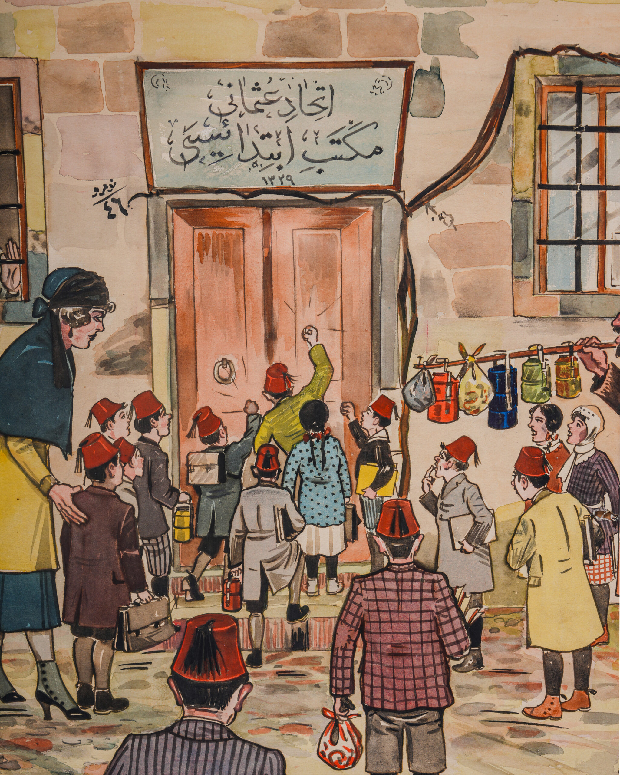 Kağıt üzerine sulu boya karikatür.