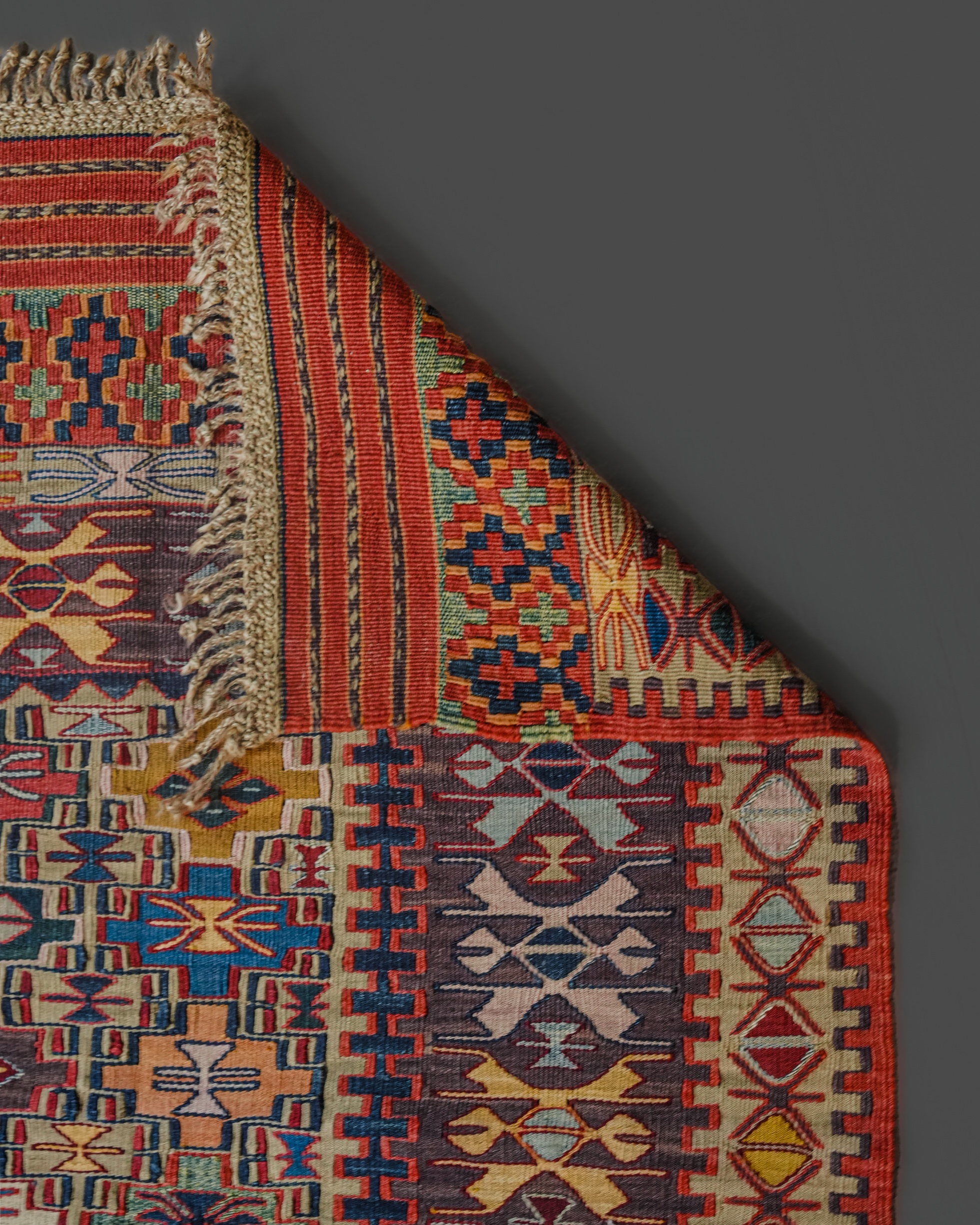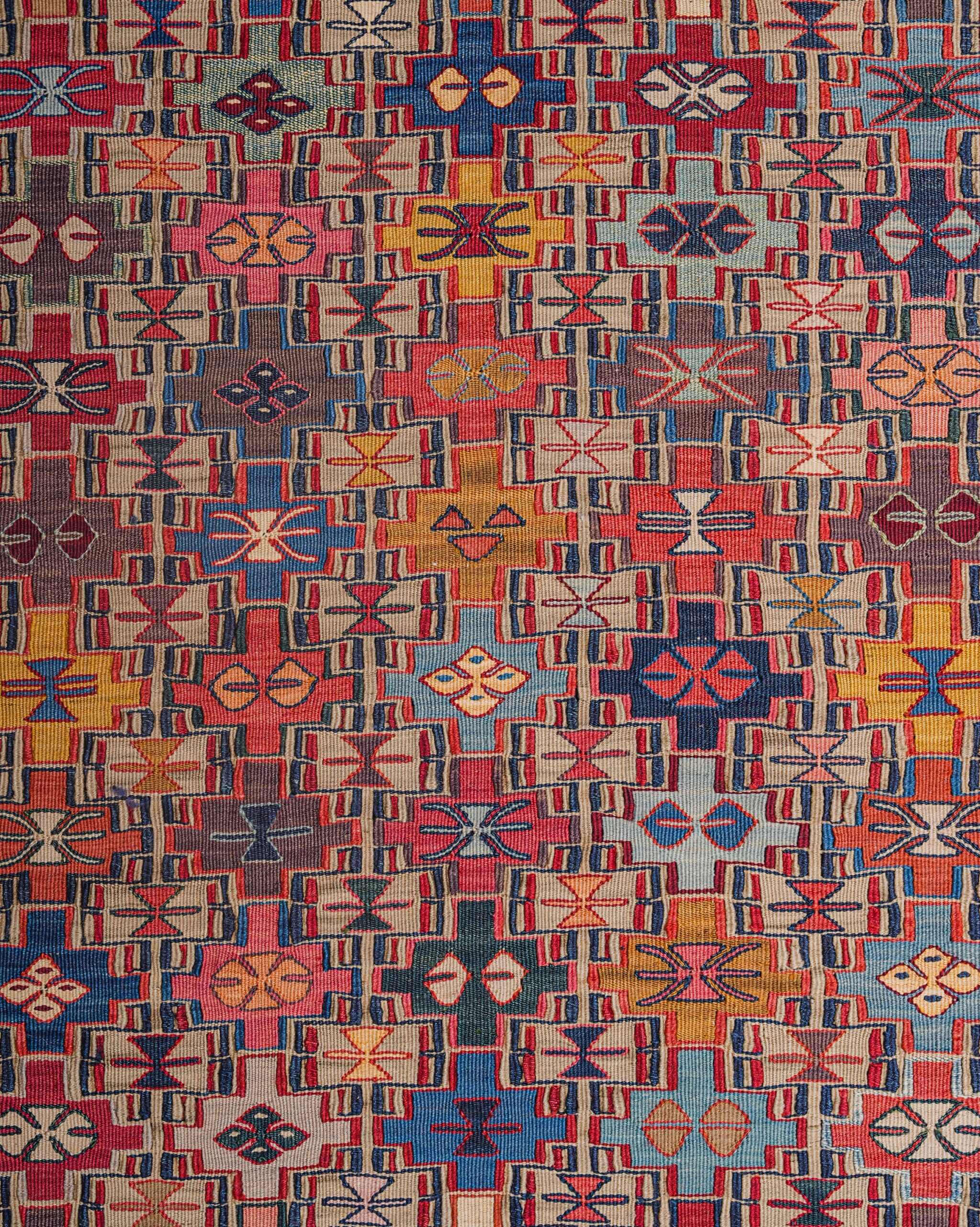 Kök boya, kirman el ipi ile dokuma, Nuzumla kilim.