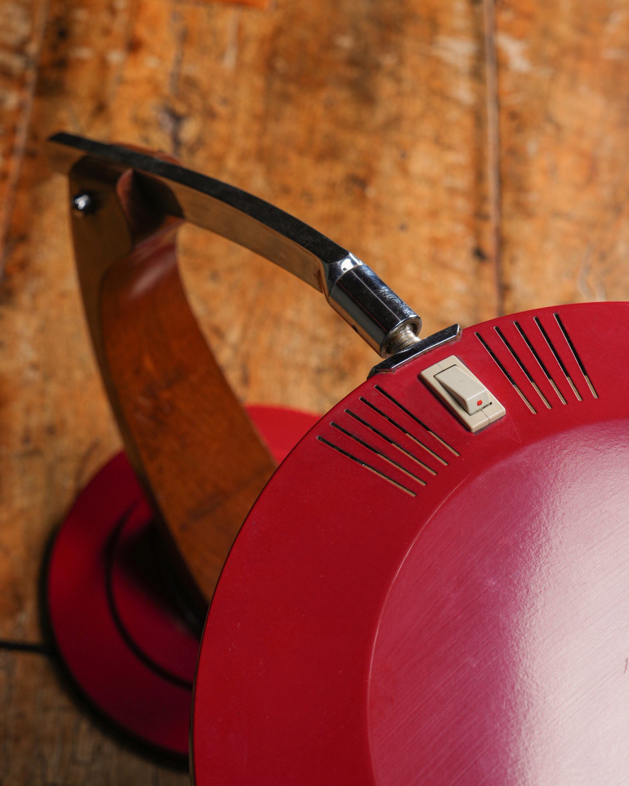 Kırmızı renkli geniş disk formundaki başlık, ışığı homojen şekilde yayarken aynı zamanda tasarıma güçlü bir görsel karakter kazandırır. Eğrisel ahşap gövde ve metal bağlantı elemanları, parçaya hem akışkanlık hem de mimari bir yapı hissi verir. Bu “tek hamlede çizilmiş” gibi duran form dili, FASE tasarımlarının ayırt edici özelliklerinden biridir.