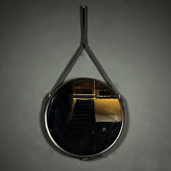 Adnet Yuvarlak Deri Ayna – Siyah