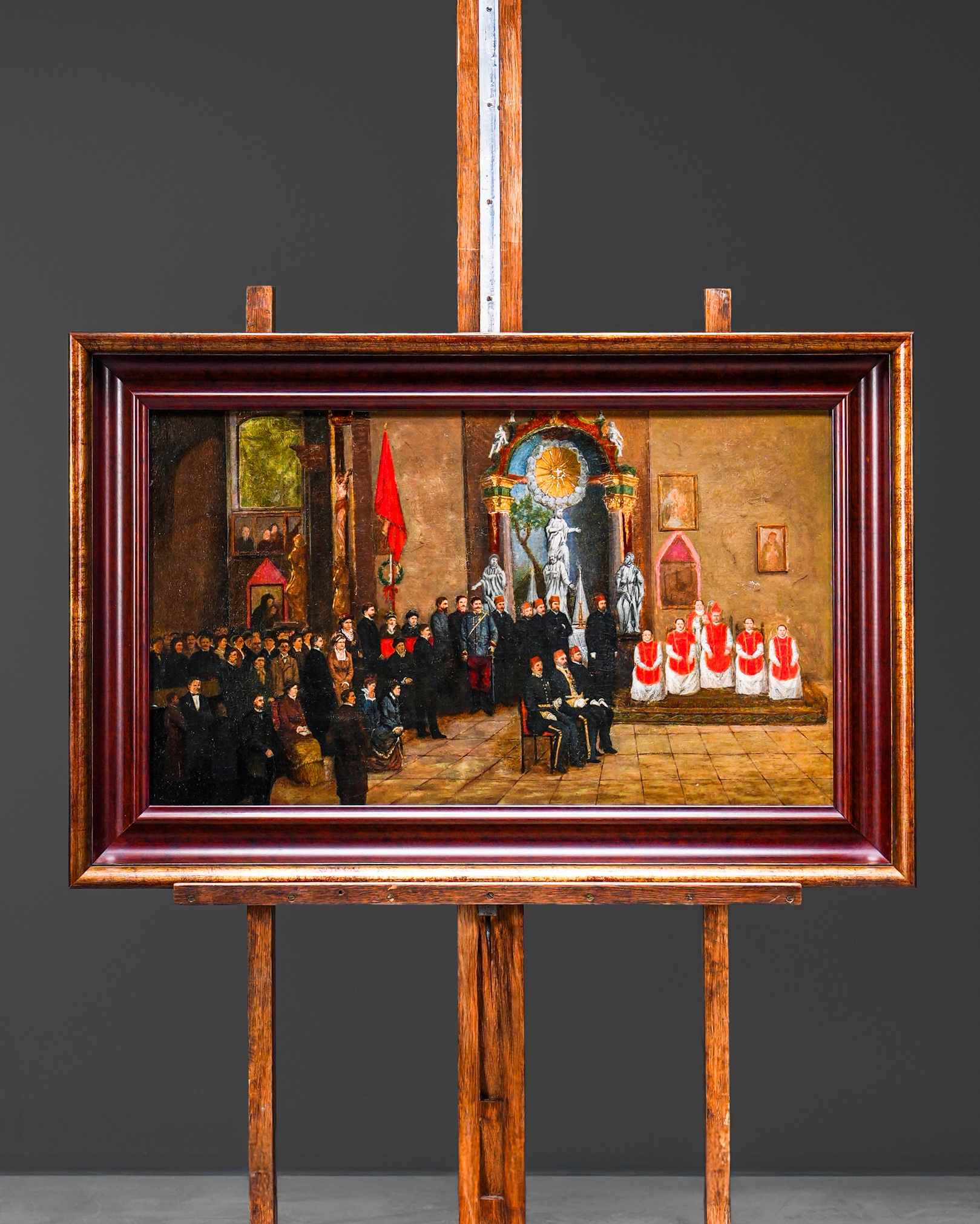 Tuval üzerine yağlı boya tekniğiyle üretilmiş olan eser, oryantalist resmin karakteristik anlatım gücünü; tören sahnesini, mimari çevreyi ve figürlerin duruşlarını öne çıkaran teatral bir sahneleme ile sunar. İmzasız olması, dönemin atölye üretimlerine veya sipariş üzerine hazırlanmış temsili tarih konulu eserlere işaret eden önemli bir detaydır. Osmanlı tarihine, diplomasi temasına ve oryantalist resim geleneğine ilgi duyan koleksiyonerler için güçlü bir anlatı değeri taşır.