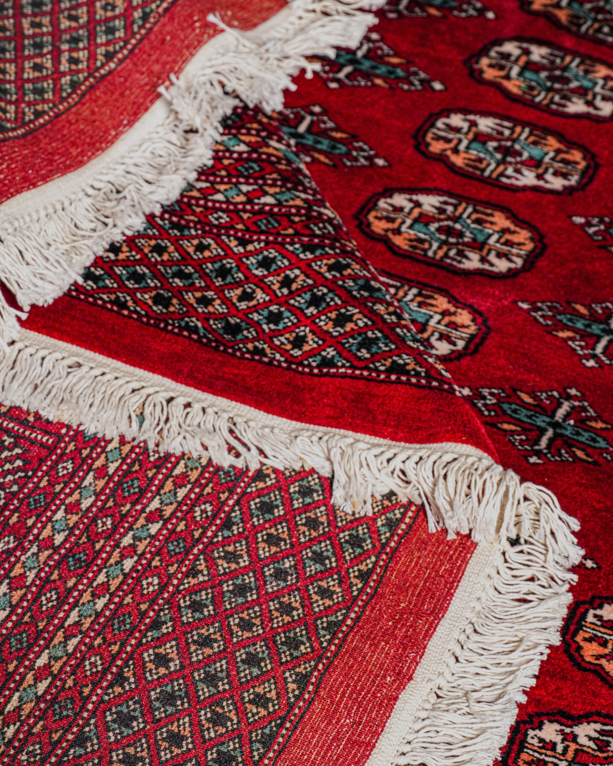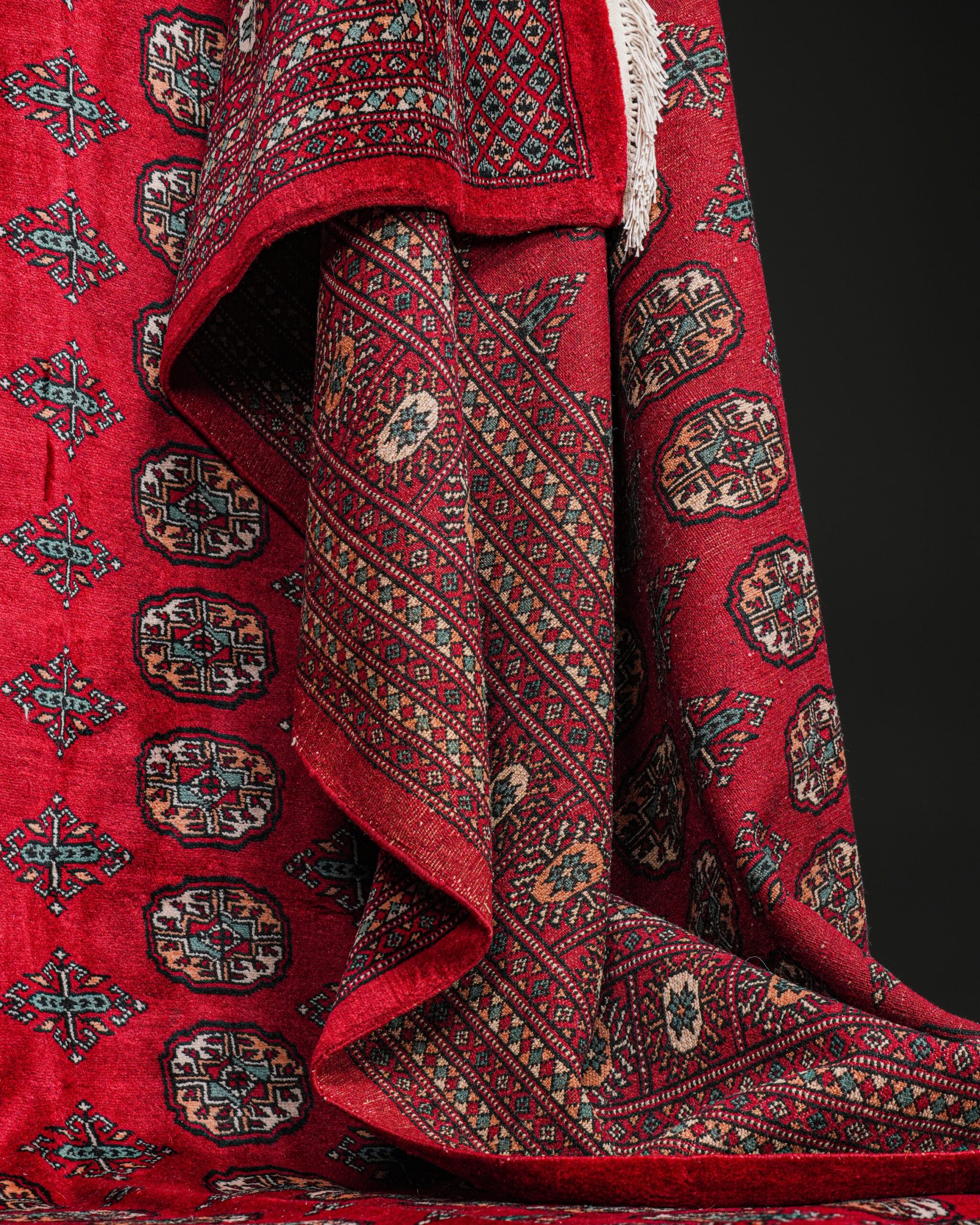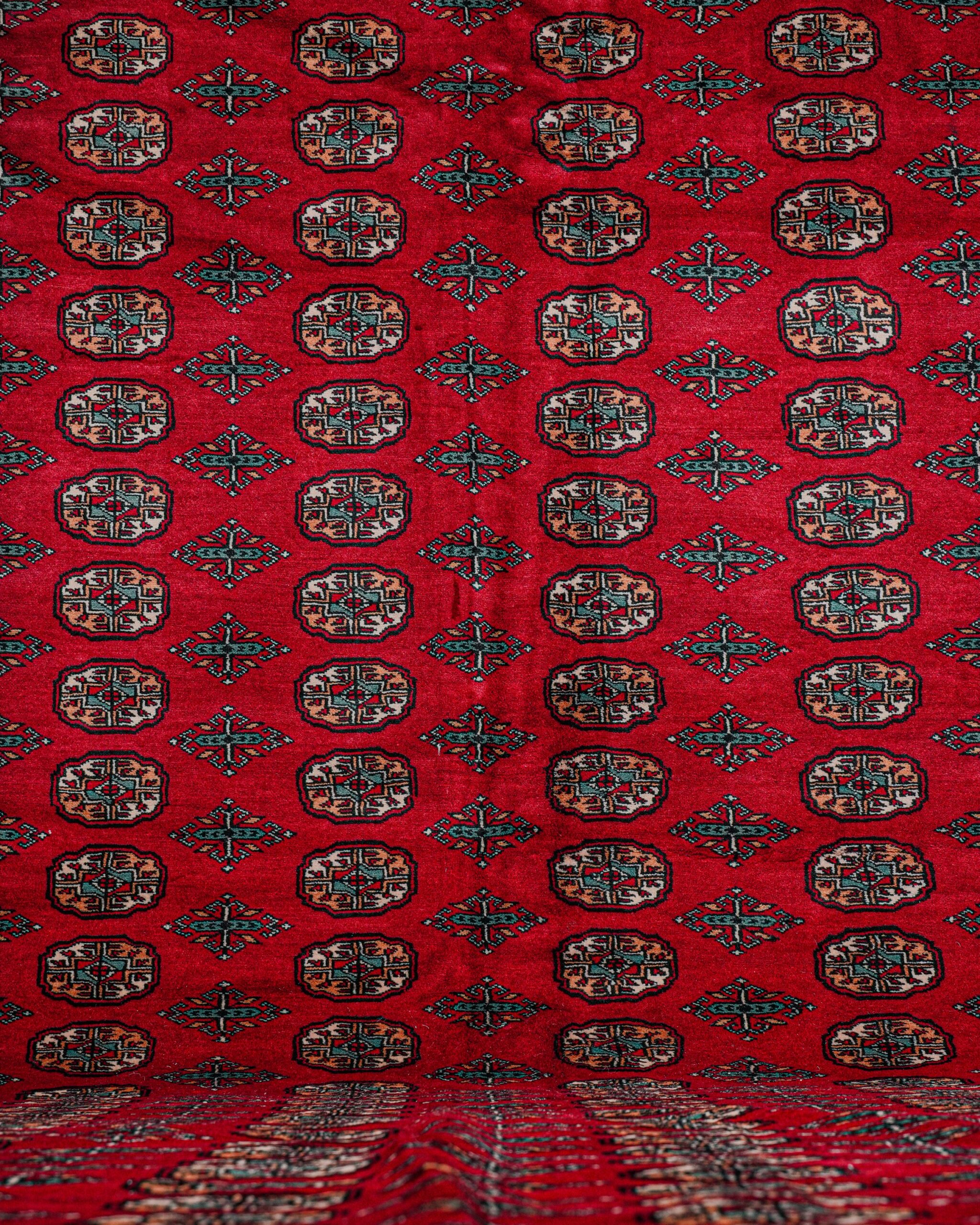 Yün ve pamuk karışımı, el dokuması Türkmen halısı, 1985.