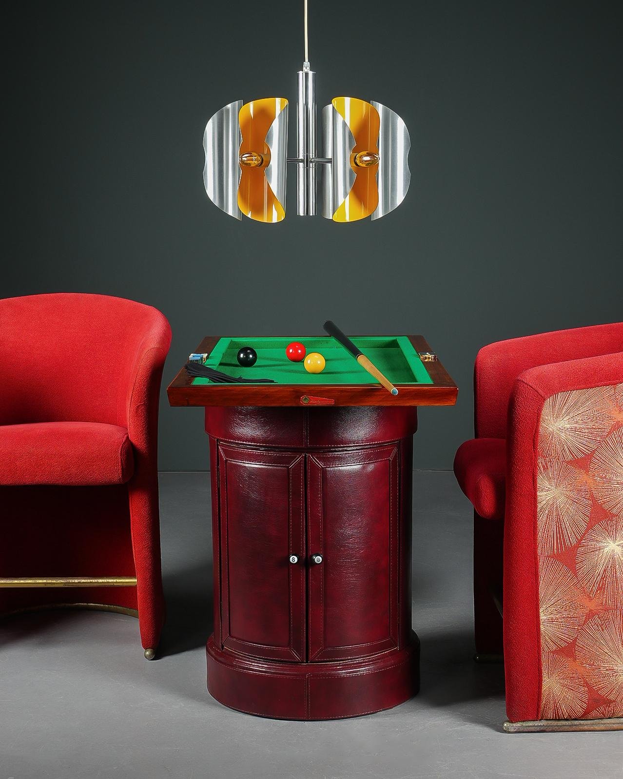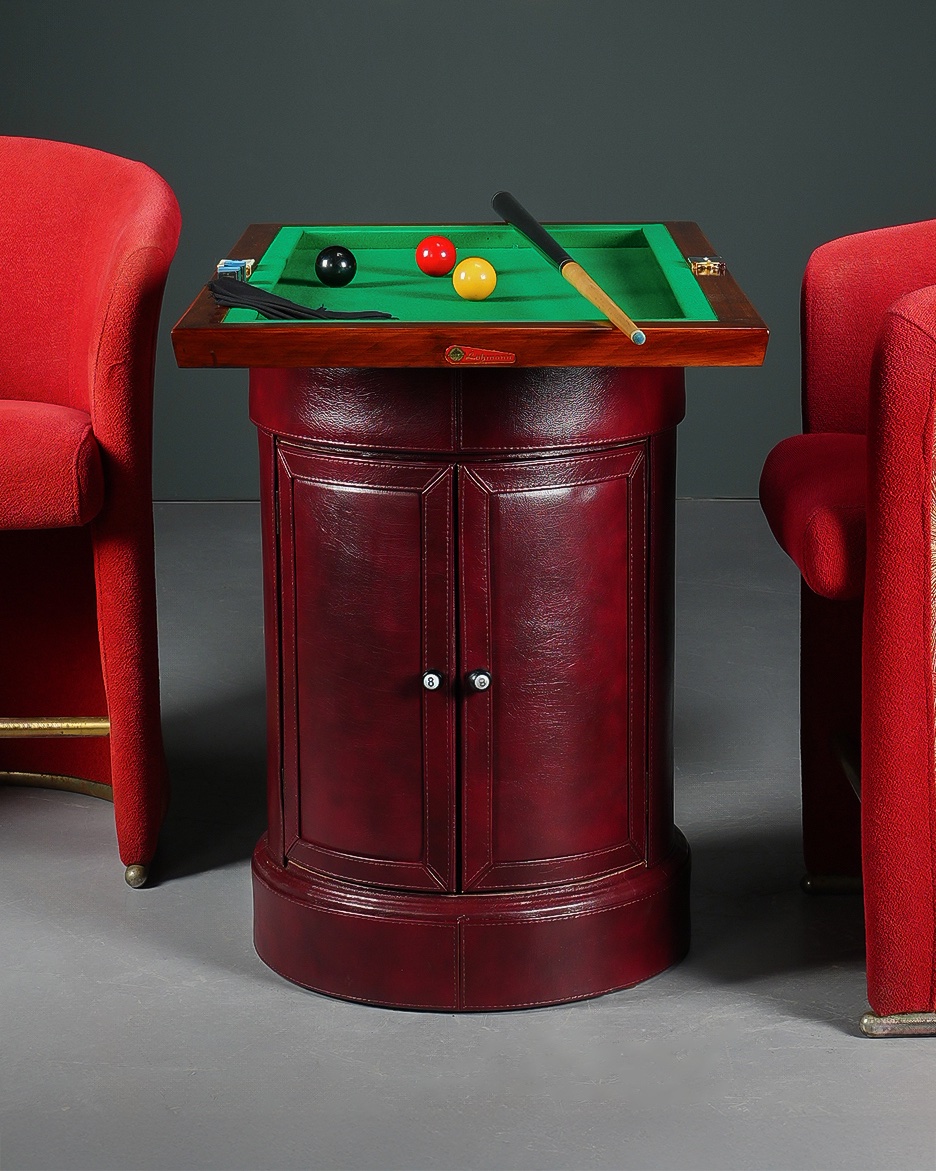 Hakiki deri kaplama silindir dolap üzerine monte edilmiş vintage 𝕃ö𝕙𝕞𝕒𝕟𝕟 mini bilardo.