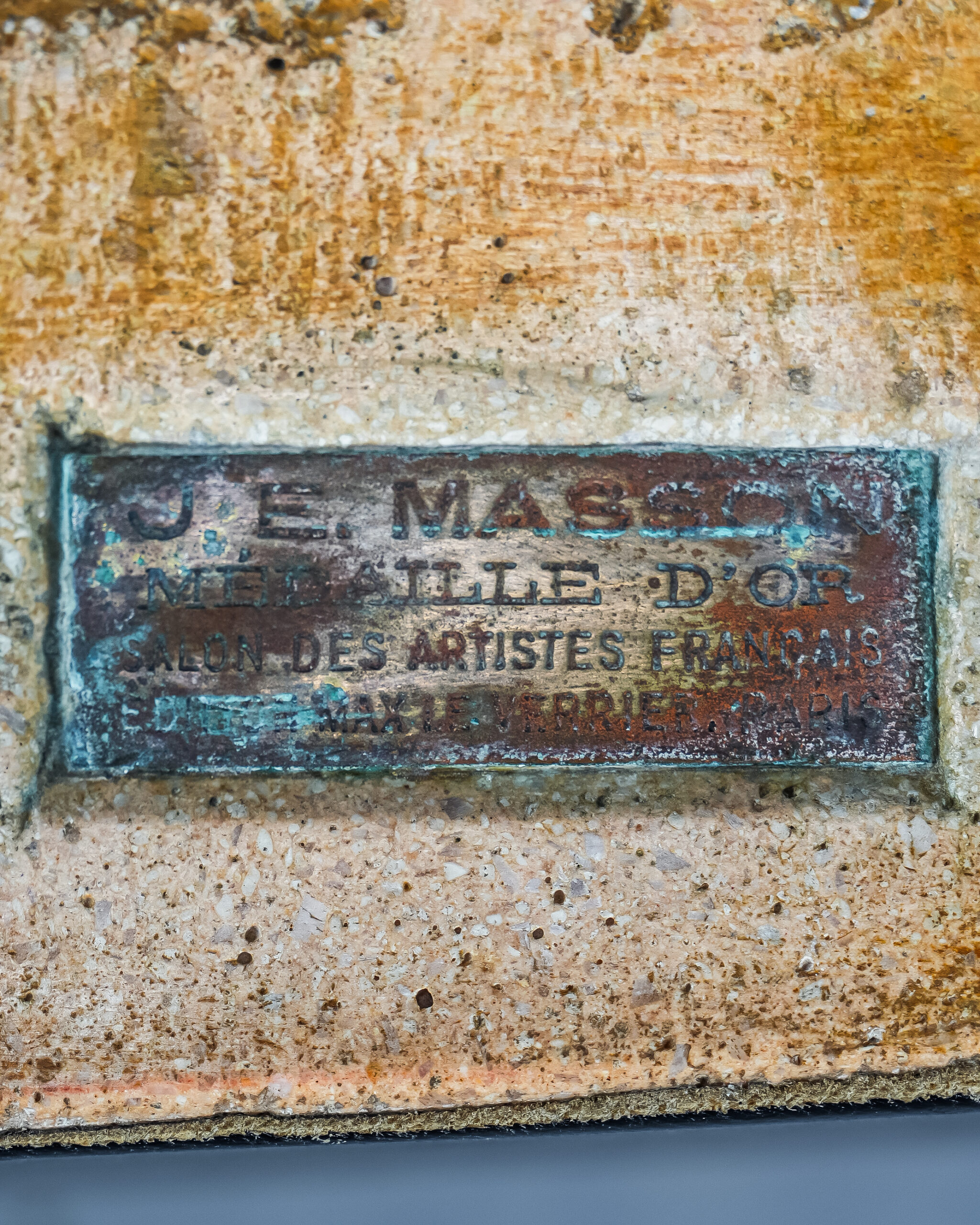 Bronz plaka üzerine imzalı; “J.E.Masson, Medaille d’Or, Salon des Artistes Français, Edition Max LeVerrier, Paris.”