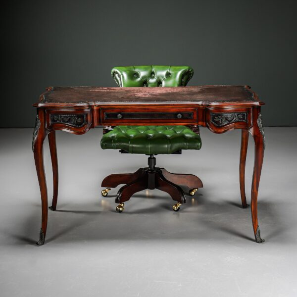 Alınlığı ve alt köşeleri süsleyen simetrik çiçekler; Louis XIV stiline ​​ve İtalyan barok sanatına göz kırpar.