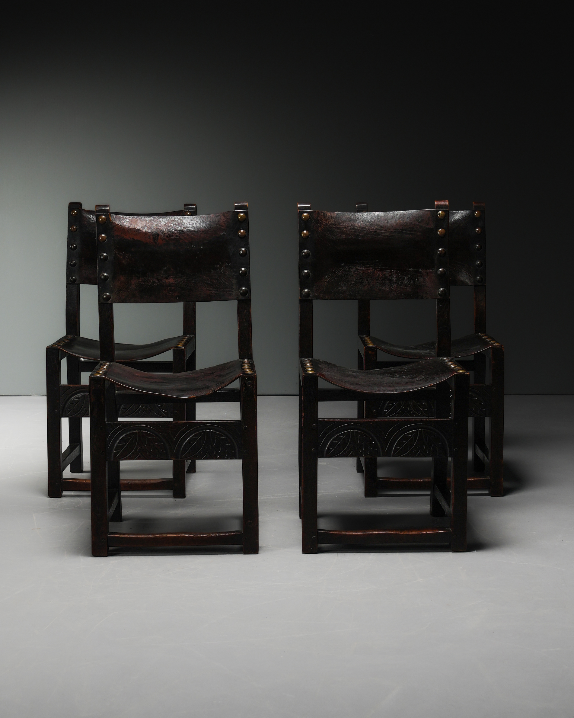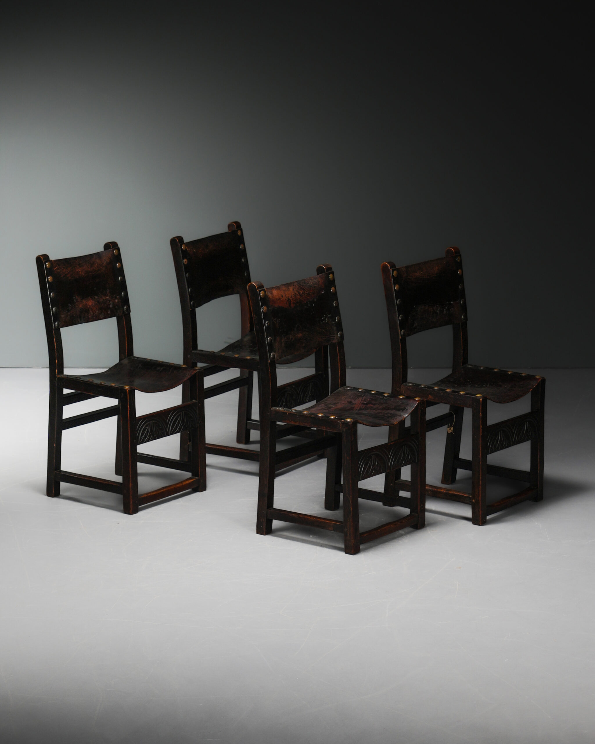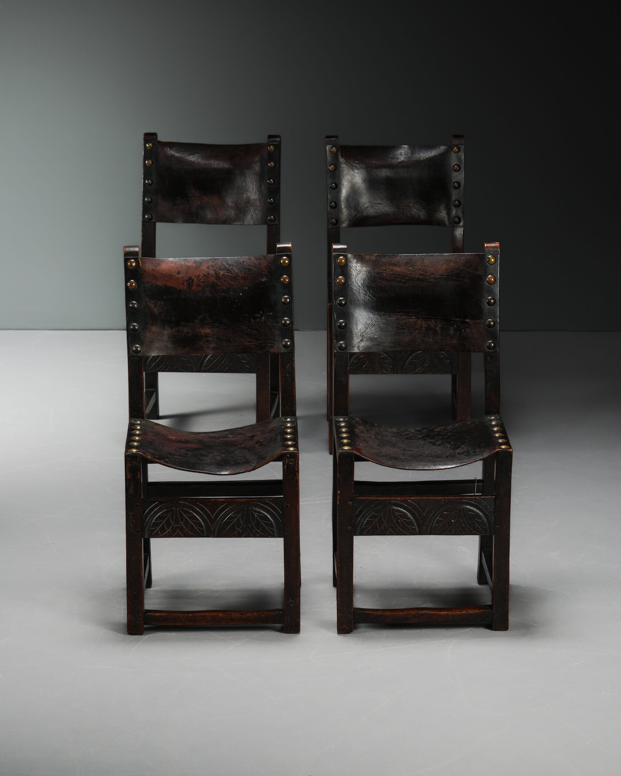 Perçinli Deri Sandalyeler – Dört Adet