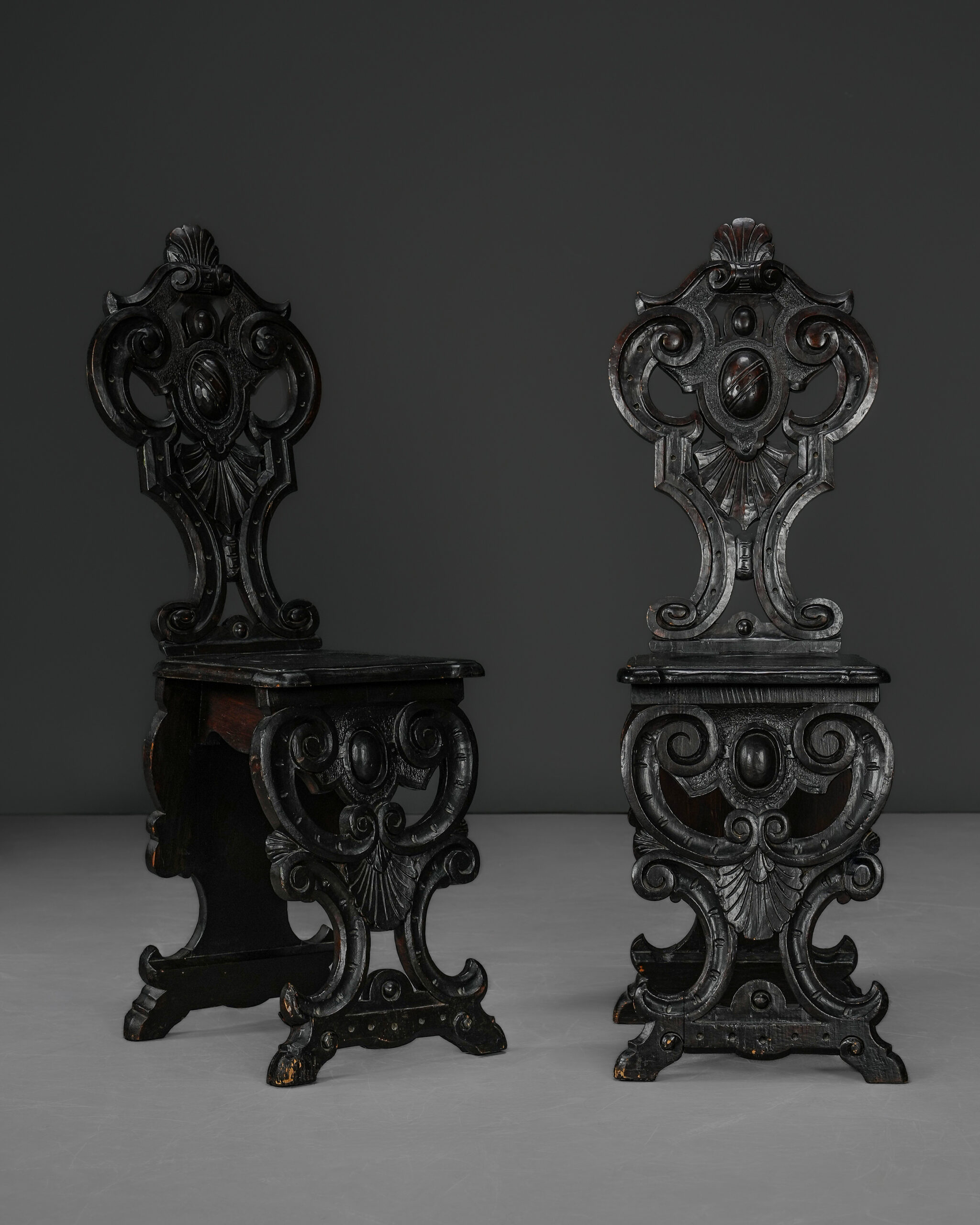 İtalyan Rönesans’ına özgü, el oyması bir çift “sgabello” (tabure).